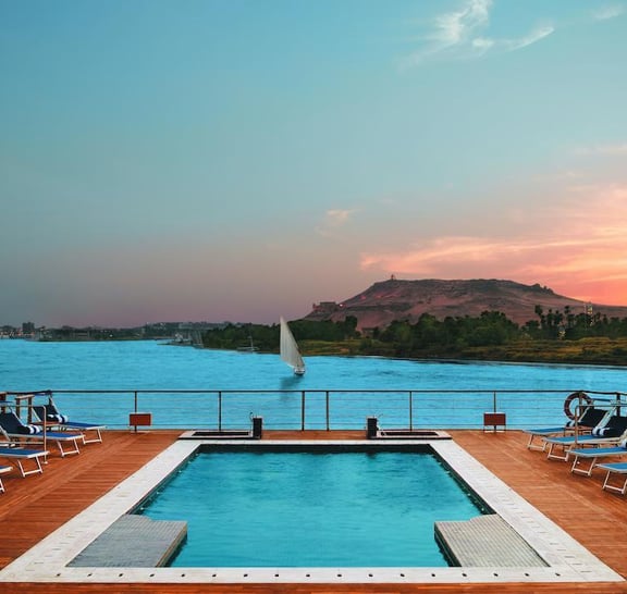 Sail down one of the world's most famous waterways as you discover top attractions in southern Egypt. During this 4-day cruise from Aswan to Luxor, you'll disembark for guided visits to the region's most iconic sites, including Kom Ombo, the Valley of Kings, and Philae Temple. Enjoy a mesmerizing sound and light show at Karnak Temple, and take a traditional felucca ride around Elephantine Island. Tasty onboard meals are included, plus a personalized pickup from the airport, train station, or your Aswan hotel. Relax on the sun deck, take a dip in the onboard pool, and participate in an authentic Egyptian cooking class for a fully immersive experience.