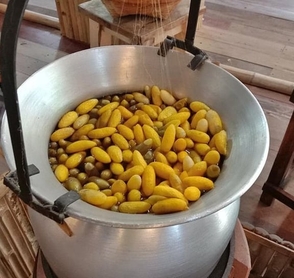 A place where you will learn about the complete textile production experience. Learning Thaisilk natural Tie-Dyed, Silk Thread Spinning, Silk Cross Weaving. Take back your own product for a great souvenir. The natural Tie-Dyed is a Thai local wisdom which inherit from one generation to the next. Experiment the color from surrouned nature. Silk Thread Spinning from the first step to the end. D.I.Y. Silk Cross Weaving is the basic of all fabric weaving process. Creat your own design color and let's start making your imagination through. This weaving process will be around 4-5 hours. You can take home a great souvenir did by yourself. Option. If you prefer to do Eco Print, you have to pay for equipment and take home @ 2,500 B. Tie Dyed, you have to pay for equipment and take home @ 650 B.