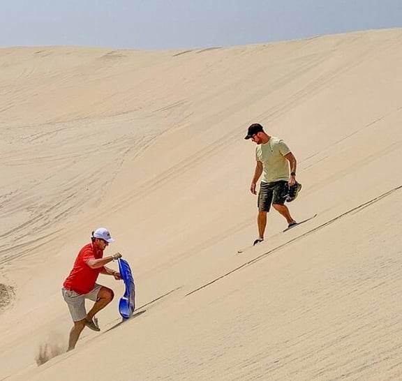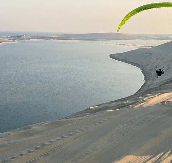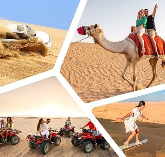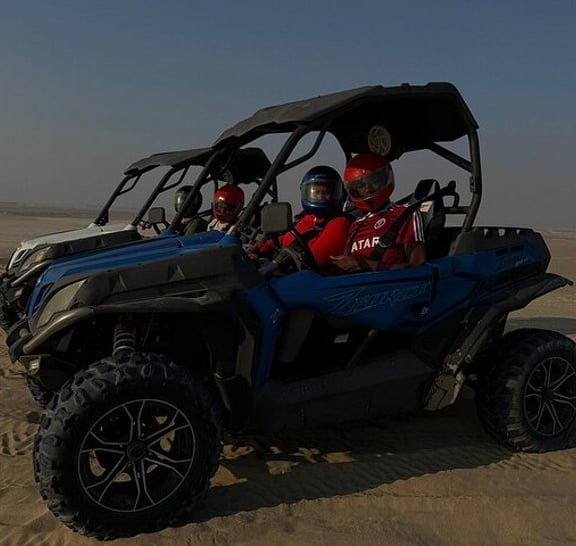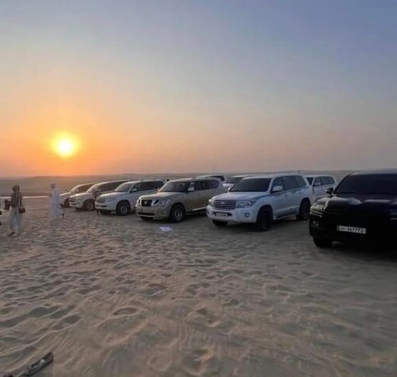 Embark on an unforgettable desert safari experience with the exclusive package designed just for you. Your adventure begins with a stop at traditional Qatari tents, where you'll have access to public restroom facilities. Brace yourself for an exhilarating ride as the expert drivers take you dune bashing with a powerful 4WD vehicle. Pause at the mesmerizing 360° dune view to capture stunning pictures of this awe-inspiring terrain. Immerse yourself in the rich culture of the desert as you interact with falcons and camels, capturing precious moments with them. Don't miss the opportunity to visit the inland sea, located near the Saudi border, for a truly unique experience. Witness an unforgettable sunset that will be a lifetime achievement. As you explore, stay refreshed with complimentary soft drinks, water, and authentic Arabic coffee. And to top it all off, enjoy a complimentary camel ride, adding an extra touch of authenticity to your desert adventure.