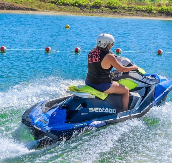 Choose two main activities: Jet Ski (10 min), Aqua Karts (10 min), or Buggy Ride (40 min).