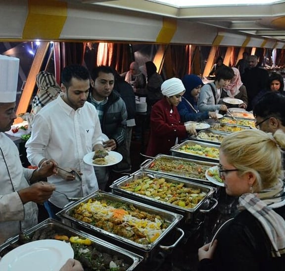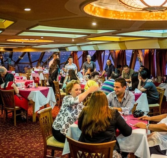 Watch the Cairo skyline light up after dark on a dinner cruise of the Nile with two remarkable dance performances. Enjoy the convenience of a private hotel transfer as you travel to the port, then enjoy an Egyptian meal on deck. Watch belly dancers and Tannoura performers bring their traditions to life with a mesmerizing blend of twirling skirts and sensuous movements. Listen to live music from an Egyptian band and take in stunning views of the city at night.