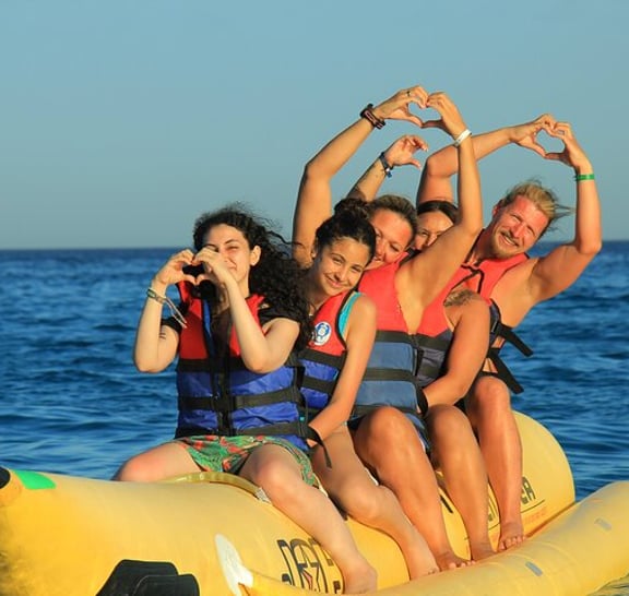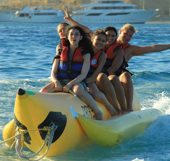 Looking for the perfect combination of exploration, island vibes, and fun in the sun? This Trip in Hurghada is your gateway to an unforgettable day on the Red Sea and Free Shopping Trip Flexible Date & Time, you choose the date and time even it's not the same day as your main excursion for free. Your journey begins with a 45-minute snorkeling session at one of Hurghada’s top spots, Next, sail to the first picturesque island for one hour of pure relaxation. Whether you're sunbathing, swimming, or soaking up the stunning views, this stop is ideal for beach lovers and photo enthusiasts alike. Then, cruise on to a second, more secluded island where you’ll have two full hours to explore, swim, or simply unwind in a peaceful setting. A freshly prepared island lunch served beachside completes this idyllic experience. Wrap up your day with exciting water sports like banana boat rides and tubing—adding a splash of adventure to your island getaway.