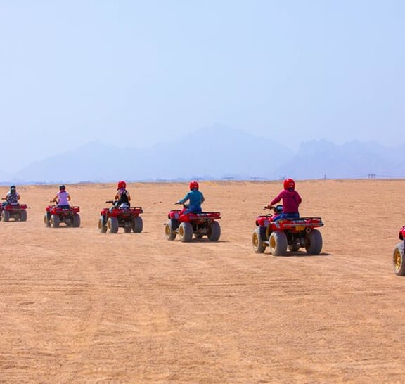 We offer Free Shopping Trip Flexible Date & Time, choose the date and time even it's not the same day as your main excursion. Your tour begins with a comfortable hotel pick-up in an air-conditioned car, taking you straight to the majestic desert landscape. Once there, your adventure kicks off with a 45-minute quad bike ride through the open desert an ideal way to feel the power of the dunes beneath your wheels. Afterward, enjoy a 15 minutes ride in a dynamic spider car, adding another level of fun and excitement to your desert journey. When it's time to relax, head to your desert camp where a delicious open buffet await you. Enjoy a wide range of dishes along with unlimited soft drinks in a traditional setting designed for comfort and authenticity. As the evening unfolds, settle in for an incredible live show. Be captivated by the energy of a thrilling fire performance, the grace of belly dancing, and the swirling colors of the Tanoura dance.