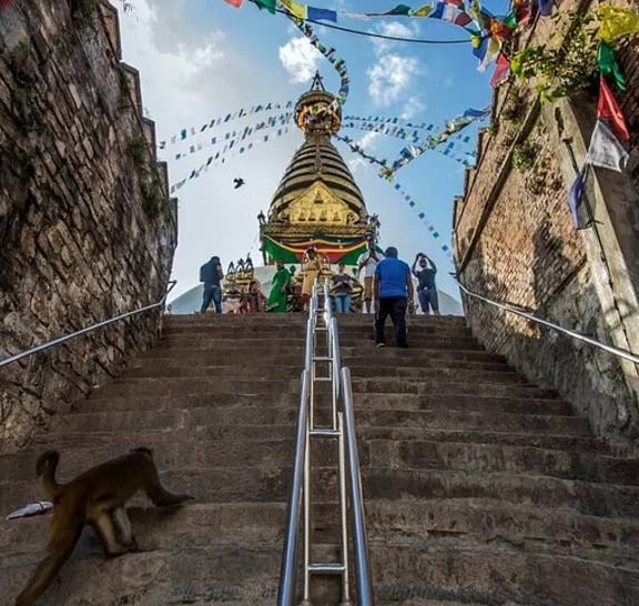 Swayambhunath Stupa—better known as the Monkey Temple—sits high on a hill, offering the best views of Kathmandu Valley. The iconic white dome, topped with Buddha’s all-seeing eyes, watches over the city like a spiritual guardian. Climb the 365 stone steps (watch out for mischievous monkeys!) and you’ll be rewarded with sweeping valley panoramas and the hum of prayer wheels spinning in the breeze. More than just a postcard-perfect spot, this ancient stupa pulses with energy—equal parts sacred site and cultural landmark. No trip to Kathmandu feels complete without soaking in the vibe here.