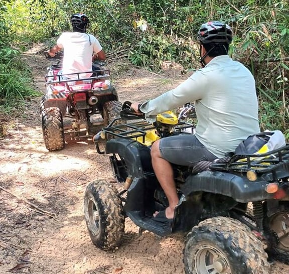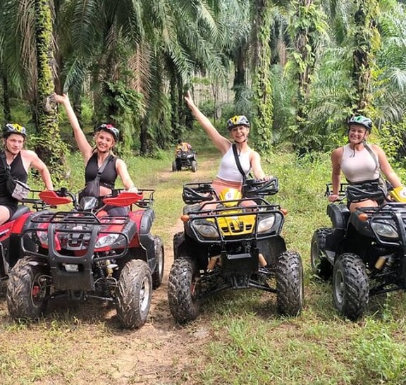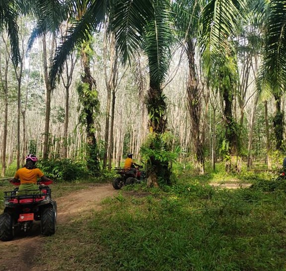 Enjoy the mangroves as you paddle though some of the most picturesque beaches and forest . This is truly an adventure you won’t soon forget. After a relaxing paddle across the Ao Thalane inlet you enter into the magestic mangrove forest. This is a world of its own , with its multi colored limestone cliffs, stunning canyon, wandering channels and the alligator cave. Stop for a swim and enjoy the scenery and keep your eyes open for those little creatures and crazy monkeys. Upon return sit down and experience fresh watermelon , drive to the jungle, palm plantations and coconut groves. Hop on the ATV,s and hang on as you explore Thailands wilderness. Great excitement, awesome trails and incredible beauty. This is definitely a must do package. We look forward to the adventure with you.