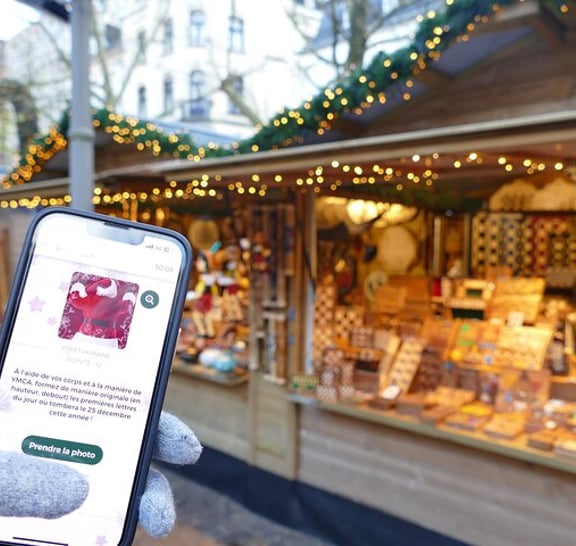 Experience a unique and magical tour of the Christmas market Play on the day and time of your choice In an exceptional setting in the heart of the Christmas Market Photos and videos are saved directly to your smartphone A friendly moment with family, colleagues or friends!