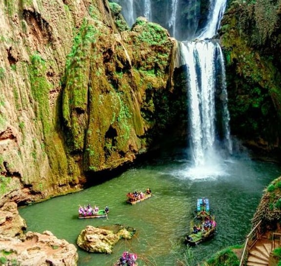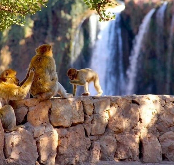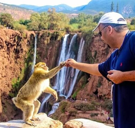 Discover the majestic Ouzoud Waterfalls with our adventure from Marrakech. Travel through picturesque landscapes before reaching the towering falls, among the highest in North Africa. Explore the surrounding trails with a guide, encountering lush greenery and playful Barbary monkeys along the way. After the hike, enjoy a refreshing boat ride at the base of the falls, capturing unforgettable photos amid the mist. Treat yourself to a delicious traditional Moroccan lunch at a local restaurant, savoring the region's culinary delights. This excursion offers a perfect mix of nature, culture, and relaxation—ideal for anyone looking to unwind and experience Morocco’s natural beauty.