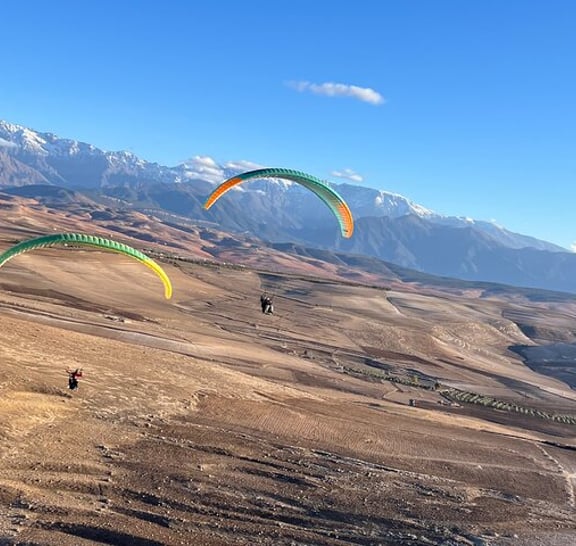 Experience more than just paragliding—soar above stunning landscapes near Marrakech with panoramic views of the Atlas Mountains and Berber villages. Our certified pilots ensure a safe, thrilling flight perfect for all levels, no experience needed. After landing, unwind on a beautiful terrace with traditional Moroccan tea and snacks, adding a peaceful, cultural touch to your adventure. Small group sizes mean personal attention and no crowds. We also capture your flight on camera so you can relive the moment. This is not just a ride—it’s a memory you’ll never forget.