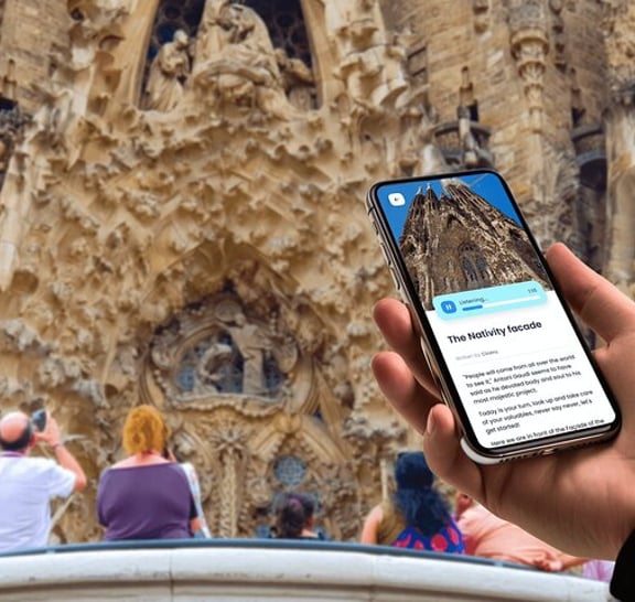 Odkryj Sagradę Familię na swój sposób, korzystając ze spaceru z przewodnikiem Ciceru - audio i tekst w 7 językach, bezpośrednio na telefonie. Bez aplikacji, bez kłopotów - po prostu naciśnij play i odkrywaj! Poznaj architektoniczne i symboliczne cuda Sagrada Família poprzez jej trzy wspaniałe fasady: fasadę Narodzenia Pańskiego, pełną życia i skomplikowanych szczegółów, celebrującą narodziny Chrystusa; fasadę Męki Pańskiej, surową i dramatyczną, przedstawiającą cierpienie i ukrzyżowanie Jezusa z niezwykłą intensywnością; oraz fasadę Chwały, wciąż w budowie, mającą być najbardziej imponującą, symbolizującą drogę do zbawienia. Każda fasada opowiada unikalny rozdział historii chrześcijaństwa, łącząc wizjonerski geniusz Gaudiego z głębokim duchowym znaczeniem. Podążaj za wycieczką do końca, aby odkryć specjalne miejsce do stworzenia własnej pocztówki Sagrada Familia.