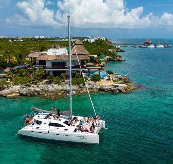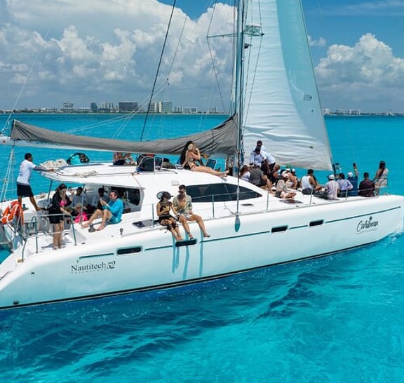 Wyrusz na niezapomnianą przygodę katamaranem w Cancun! Ciesz się wspaniałymi widokami na Cancun i Isla Mujeres podczas żeglugi po pięknym Morzu Karaibskim. Ta przyjazna rodzinom wycieczka jest dostępna przez cały rok. Spędź dzień na luksusowym współdzielonym katamaranie z usługą all-inclusive i wspaniałymi gospodarzami. Zrelaksuj się i baw się dobrze.