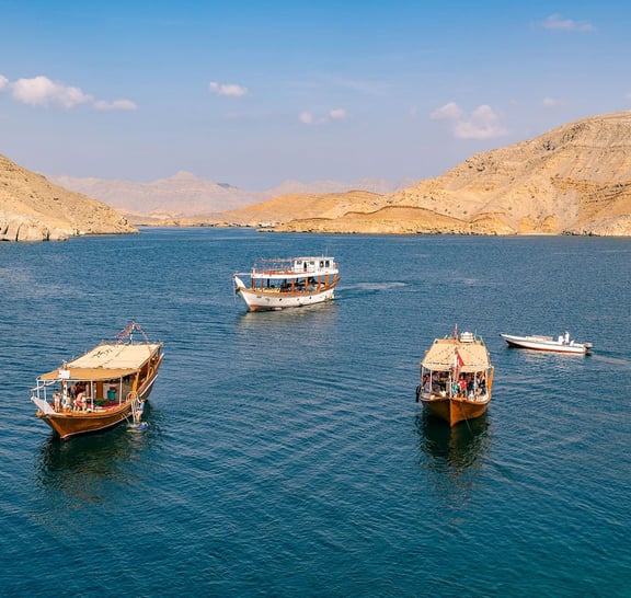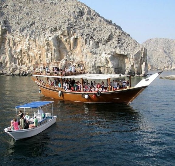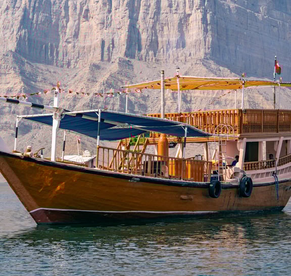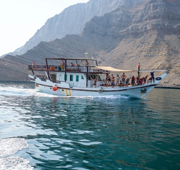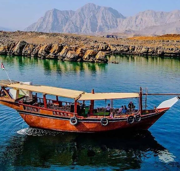 - Żegluj wzdłuż przypominającej fiordy linii brzegowej Musandam na klasycznej drewnianej łodzi dhow Omani.