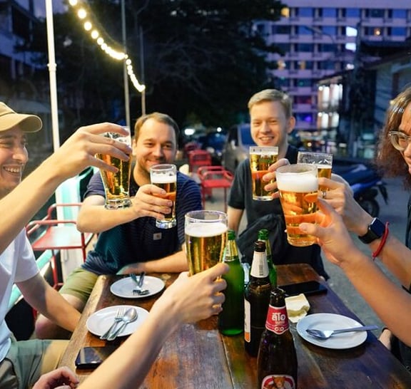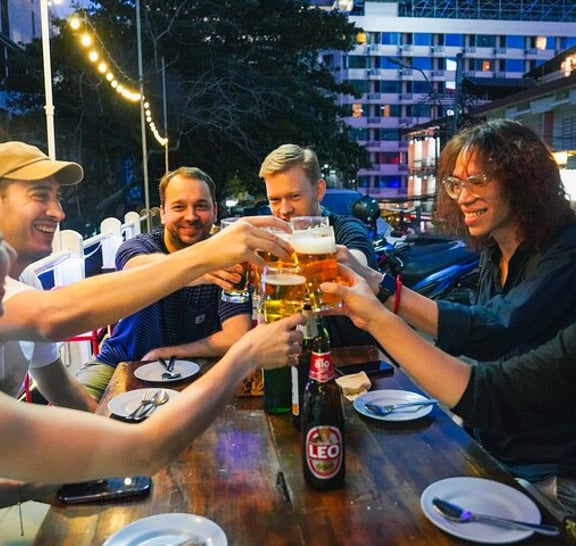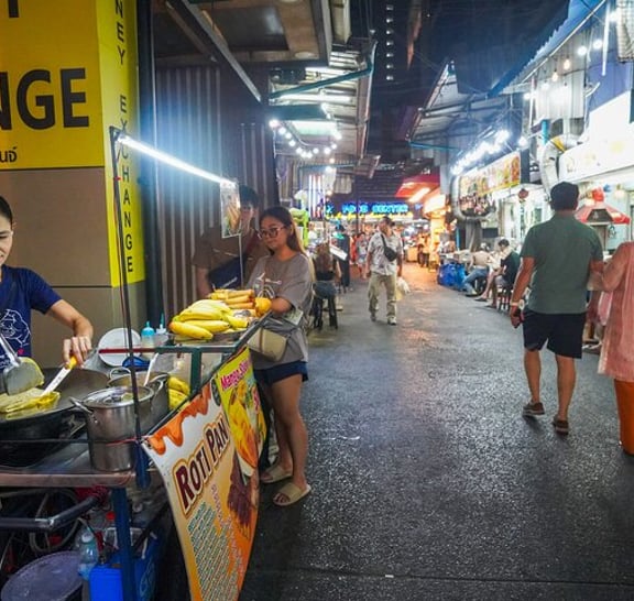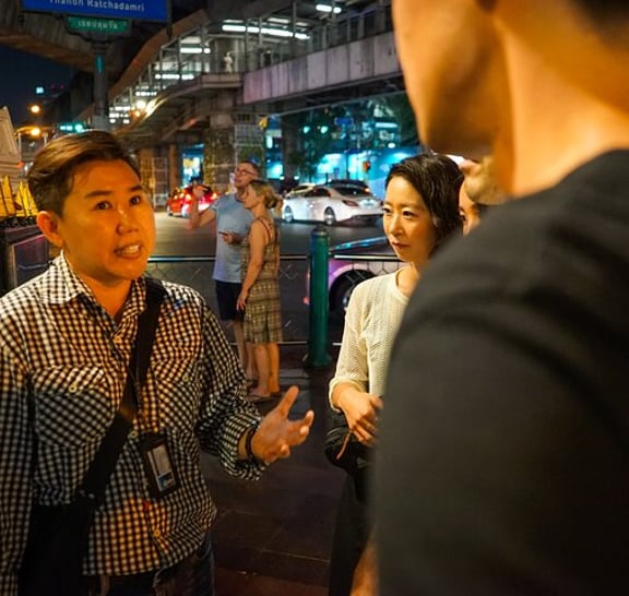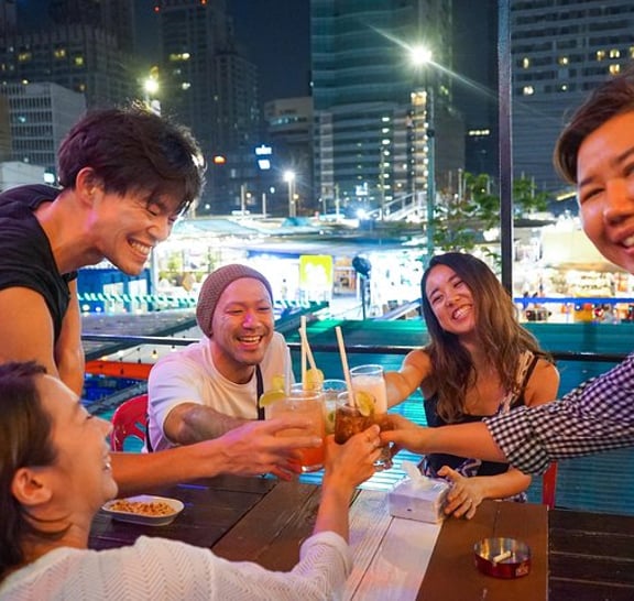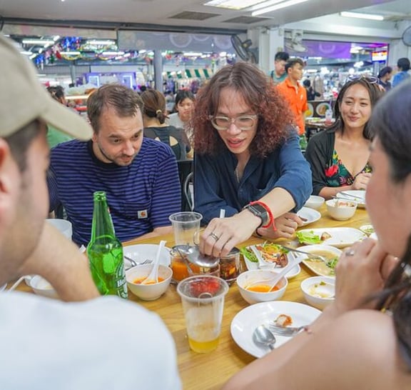 (1) Siam bölgesindeki işlek caddeleri ziyaret ederek Bangkok'un canlı gece hayatını keşfedin Tur, Platunam bölgesi çevresindeki kalabalık yerel caddelerde yürüyerek başlar ve ilk yerel yemek tezgahına gider. Yemek standında otantik Tayland yemekleri sizi bekliyor ve herkesle birlikte Tayland'da yapılan soğuk biraları içmeye başlamaya hazır! (2) Başka bir yerel Tayland barına ve restoranına uğrayın ve bira eşliğinde otantik Tayland yemeklerini deneyin! Birçok yerel Taylandlının işten sonra içki içtiği daha fazla bar ve restorana atlamaya devam edeceğiz. Doğal olarak Asya atmosferi ile daha fazla içmenizi sağlayan yerel Tay tarzı Barbekü'yü deneyin. Elbette başka yerel menüler de mevcuttur, bu nedenle dost canlısı rehberimiz tavsiyelerimizden bazılarını önermektedir. (3) Son olarak, Pratunam gece pazarındaki 3. bara atlayın Pratunam gece pazarındaki son barda içeceğiz! Barda yerel kokteyller gibi birçok alkol çeşidi var! Bu bar birçok yüksek bina ile çevrilidir, böylece Bangkok'un neon ışıklarının tadını çıkarabilirsiniz.